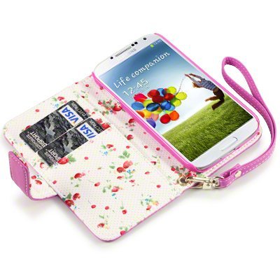 Étui / Housse "Terrapin" en Cuir pour Samsung Galaxy S4 - Rose (Fleur à l'intérieur)